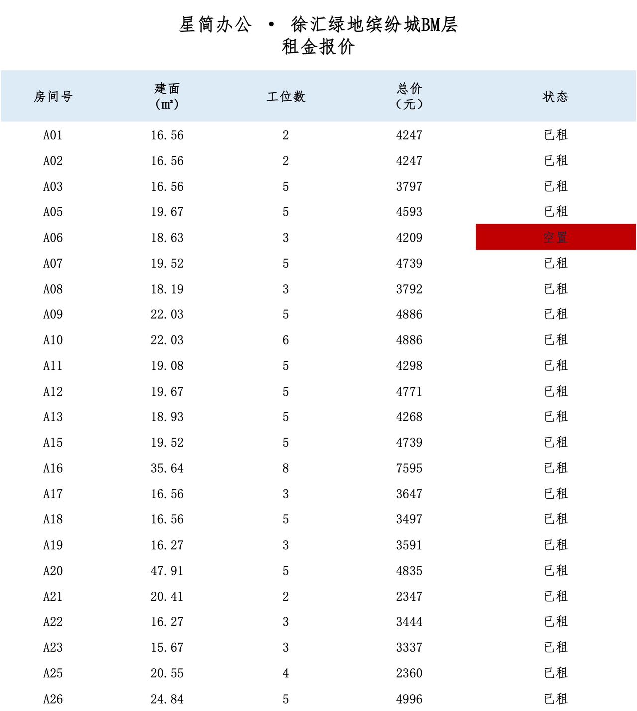 注:租金及优惠以实际洽谈为准。